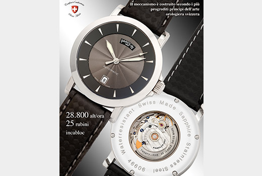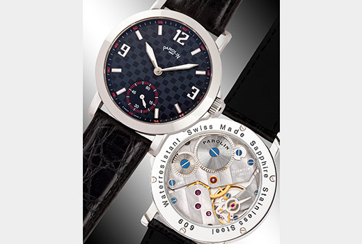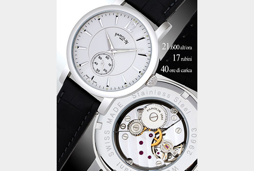 con il marchio PAROLIN 1885. La collaborazione con una storica fabbrica situata tra le montagne del Jura in Svizzera, vengono importati orologi con movimenti d'epoca rifiniti e