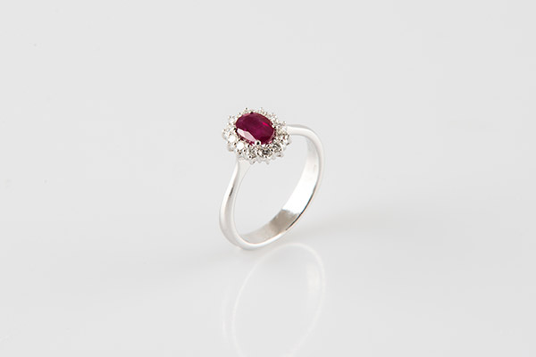 Collana girocollo in Oro750/oo bianco con rubino a goccia e brillante