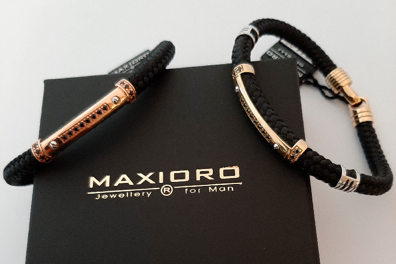 Bracciali uomo in Oro750/oo giallo/rosè con black-zirconi con cordone navale...
