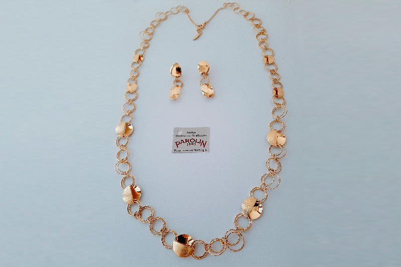 Collana e orecchini in Oro750/oo giallo, mod.esclusivo artigianale
