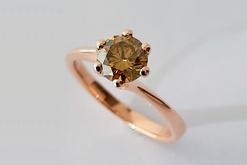 Anello in Oro 750 rosè con diamante naturale fancy intense orangy brown...