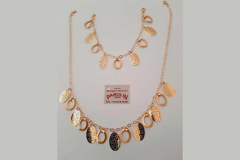 Collana con bracciale in Oro750/oo giallo con pendenti traforati