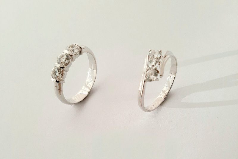 Anelli trilogi in Oro750/oo bianco con zirconi 1° di scelta.