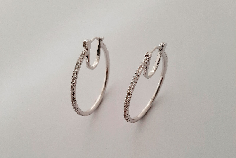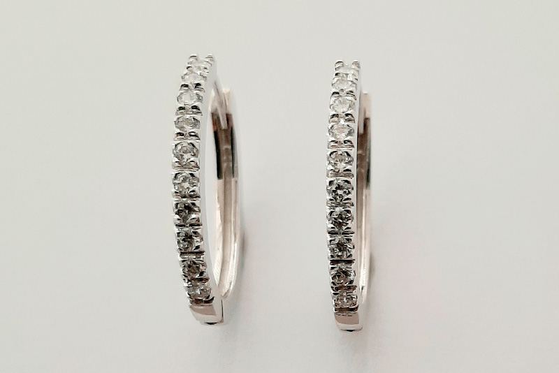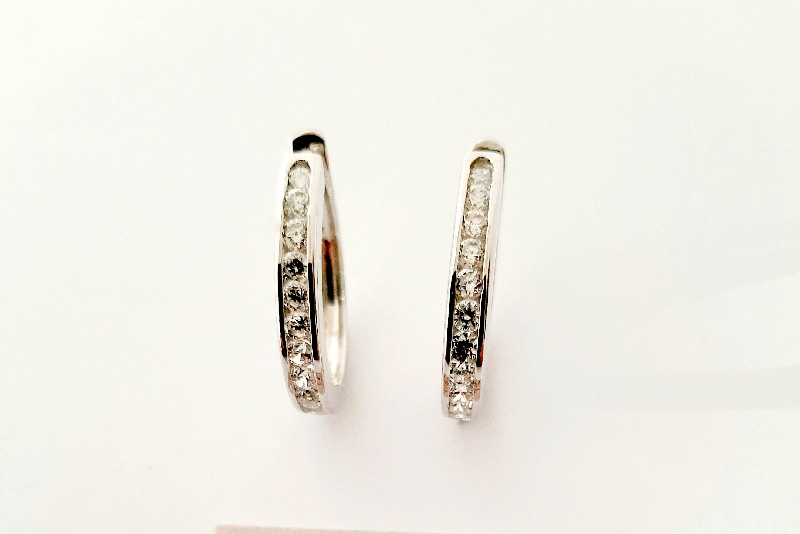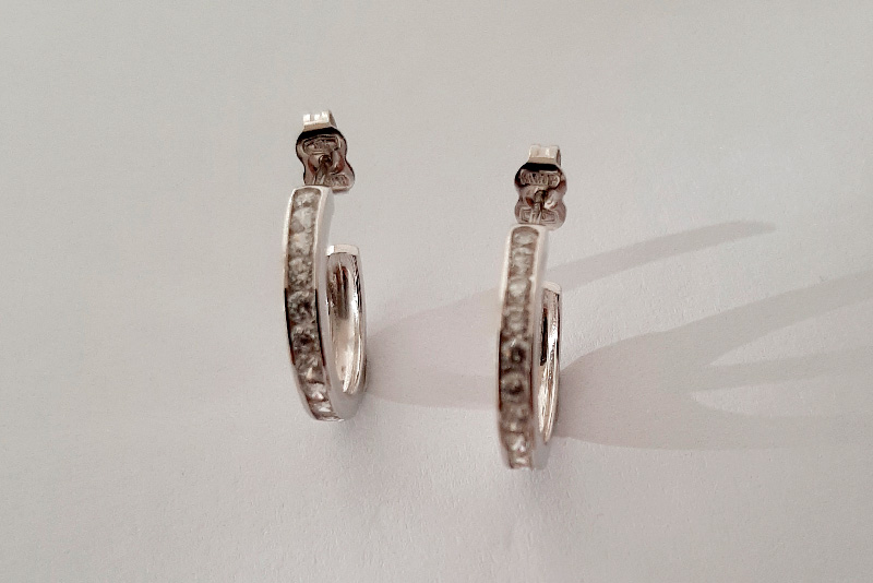 Orecchini a mezza schiona in Oro750/oo bianco con zirconi di 1°scelta.